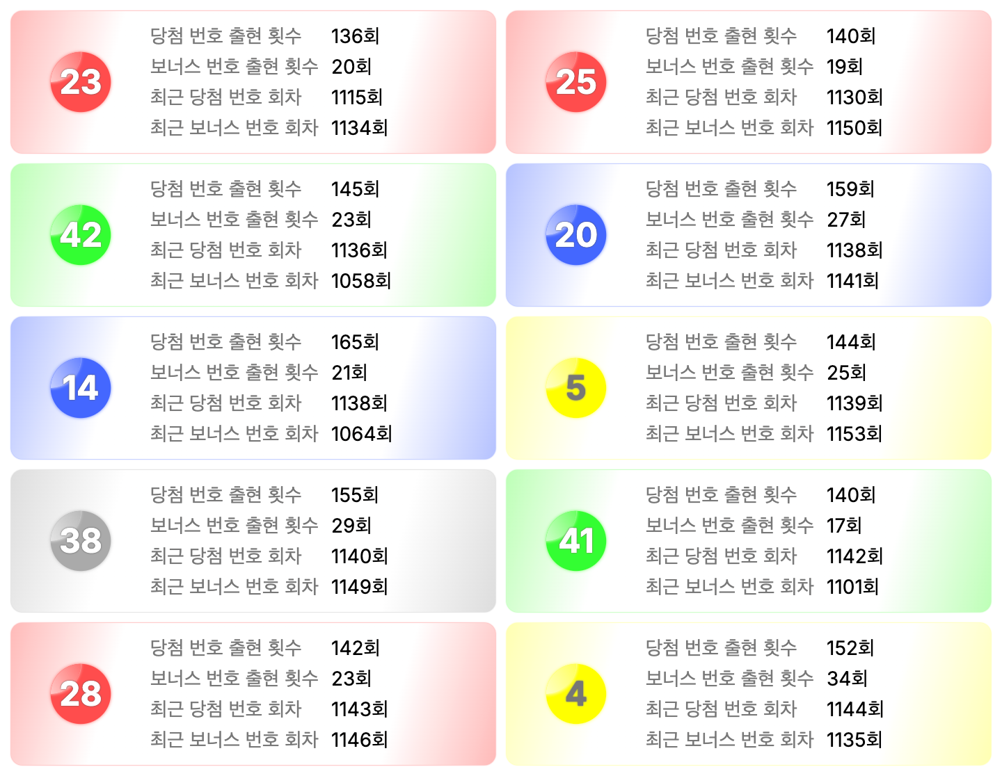 | 로또 1153회차 가장 오래 전에 나온 번호 10개 (0) | 2024.12.28 |